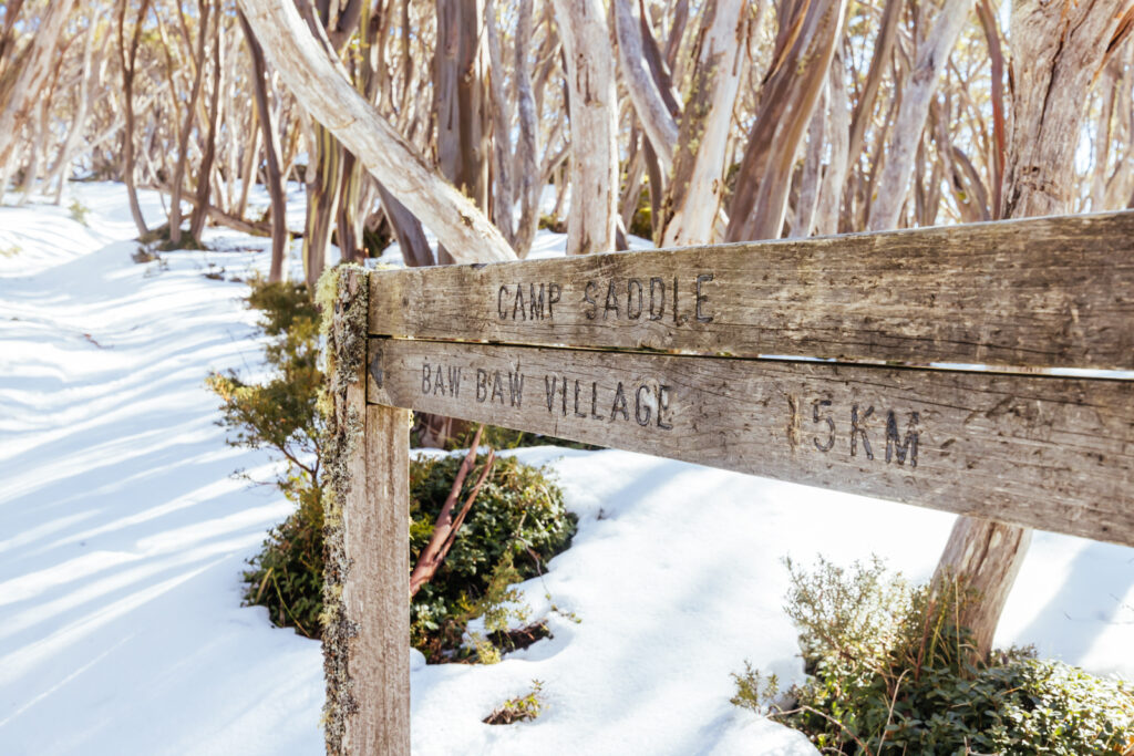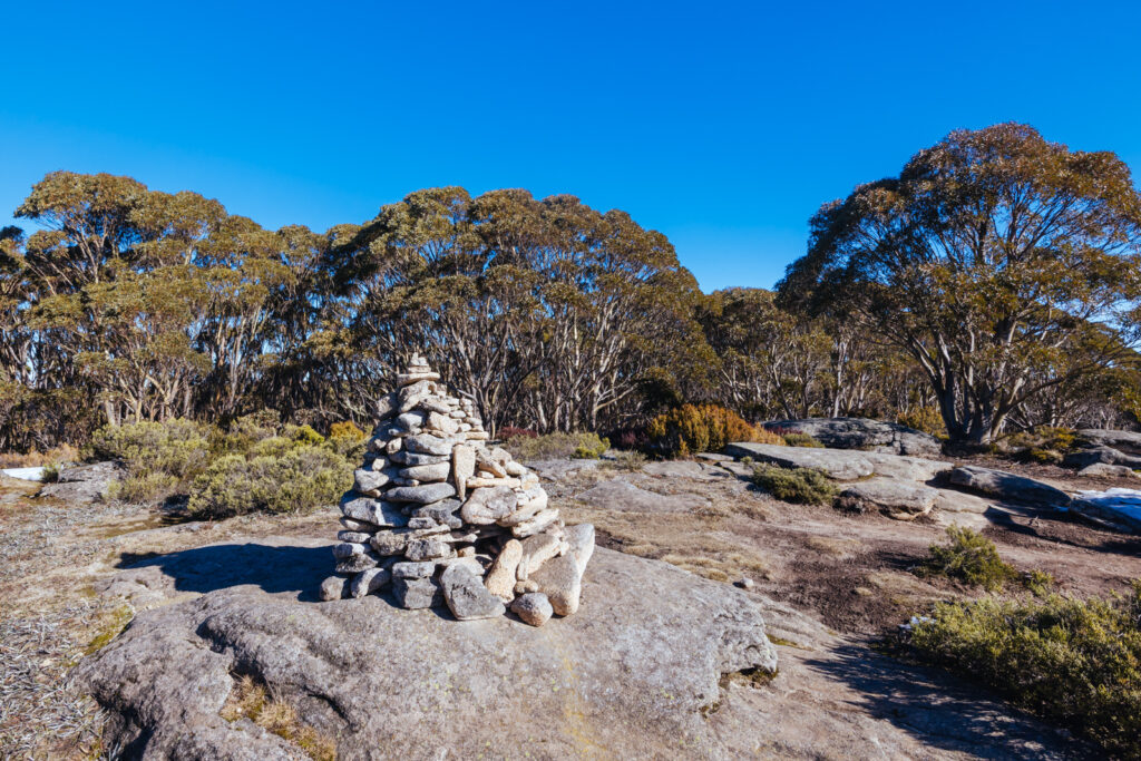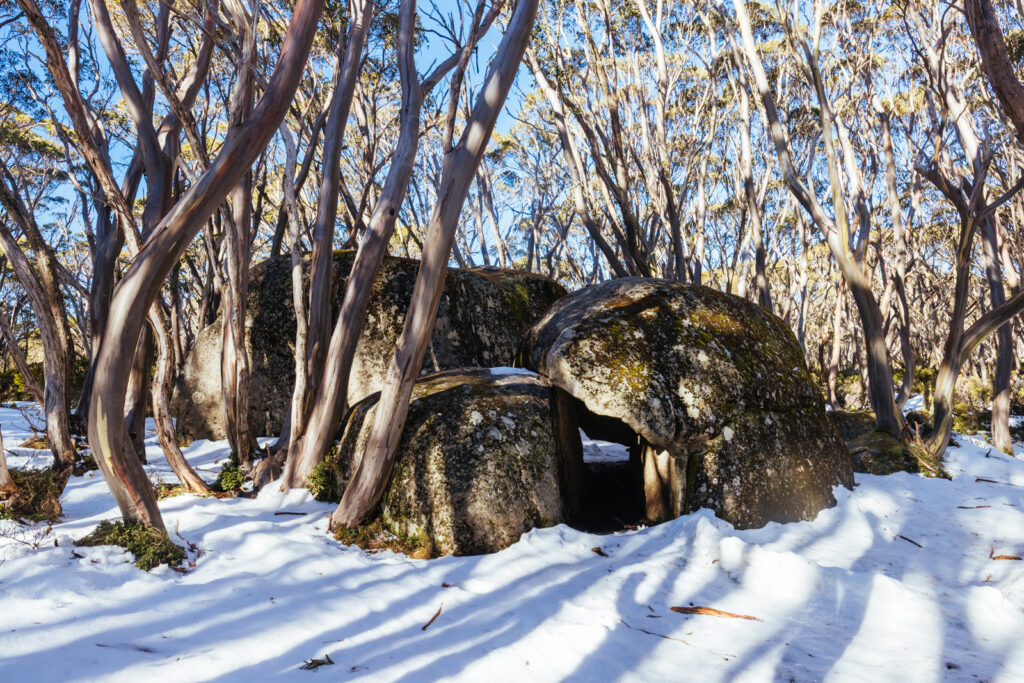 The trail descends slightly to what is known as Gwinear Flats. A great place to setup camp and fantastic snow scenery. Up to this point snow was pretty sparse, but now I was in a foot of consistent snow. How exciting! The trail then winds up hill towards the Australian Alps Walking Track (AAWT). At this intersection is the aptly named ‘Rock Shelter’. A fascinating rock formation that I presume has provided shelter to some poor soul in a sudden snow storm.