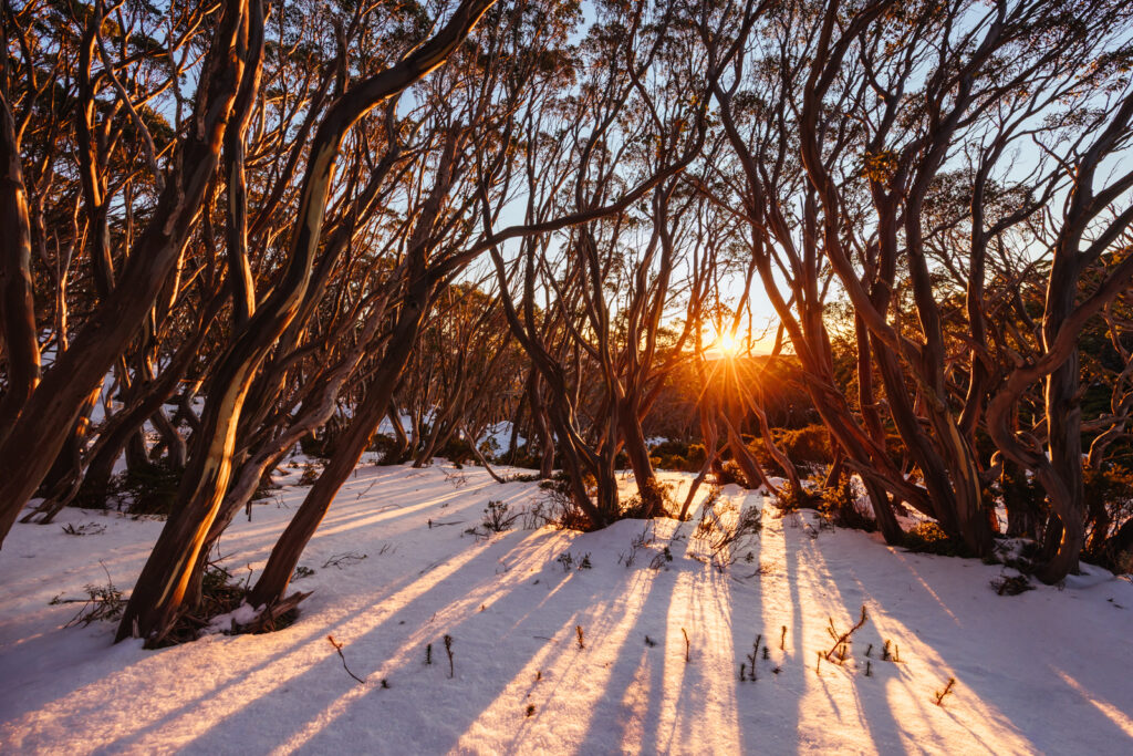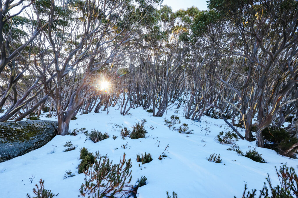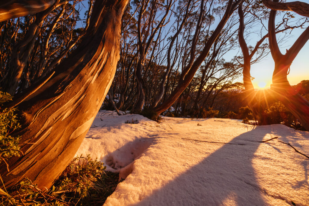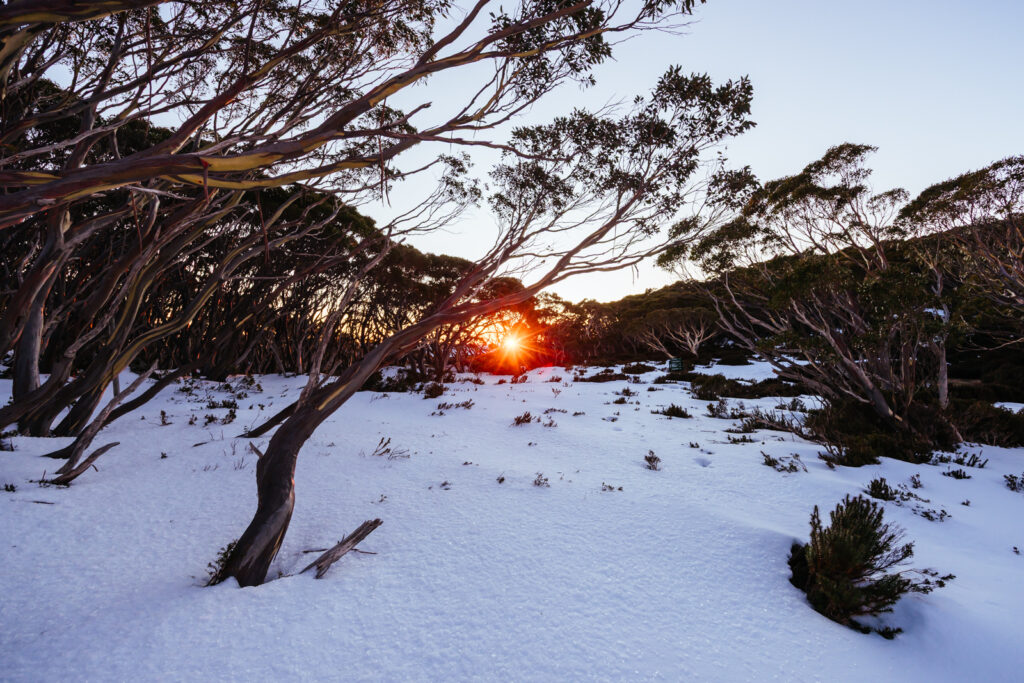 It was a quick scramble to shoot the snow gums as the intense orange sunlight lit up the landscape. It seemed like every minute presented different shadows and light effect