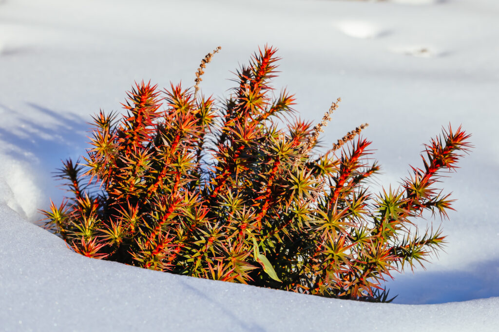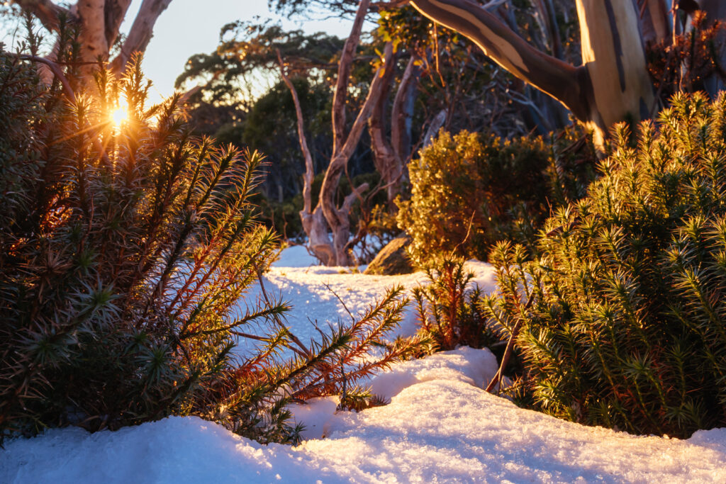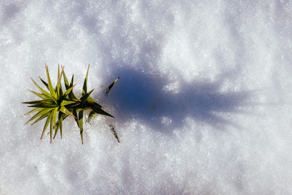 I spent about 30mins photographing the landscape in the warm afternoon light. The area was surrounded by ‘spiky plants’ that I later found out to be Richea Continentis, a candle heath plant found in Australian alpine areas. The snow had clearly fallen heavily and was laying on top of these plants. This provided an opportunity to photograph them popping out of the snow. Almost like they were saying ‘hello’ and lapping up the winter sun.
